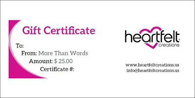 a $25 USD gift certificate from HEARTFELT CREATIONS