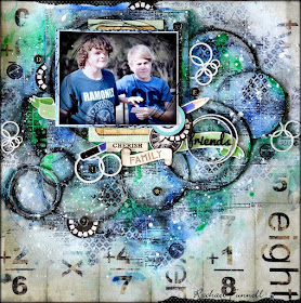 Lilibleu: "The subject of this new challenge FRIENDS immediately made me think about the very close and friendly relationship of my two boys. They get along very well and are just like the best of friends which of course doesn't prevent them from having arguments with each other regularly!! For the CIRCLES technical challenge, in addition to modeling paste circles and to the stamps on my background,