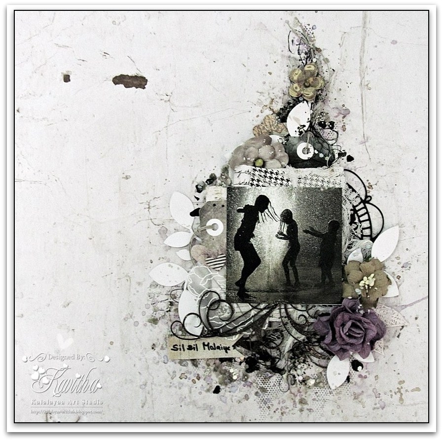 Kavitha: I love rain - the sound, the smell. Everything about it makes me feel so fresh and joyful. It keeps me in HARMONY with nature.  I incorporated the creative challenge on my page by using LYRICS from one of my favorite rain songs by Tamil.