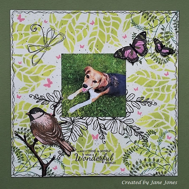 Jane: I am thrilled that this challenge is all about NATURE. I am fortunate to live in a lovely area surrounded by forests and wildlife. My many gardens attract butterflies, dragonflies and birds of all varieties. My dearest furry ANIMAL friend, Sally, loves to wander through our paradise as much as I do. You can tell by the smile on her face!