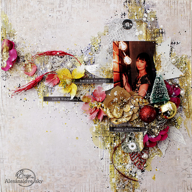 Elena T: "February is a great month in our family! During this month of love, we celebrate my husband's birthday. We have been TOGETHER for 20 years that have been the longest and best part of my life. The symbol of our creative challenge, the AMPERSAND, I've used as an embellishment in my composition."