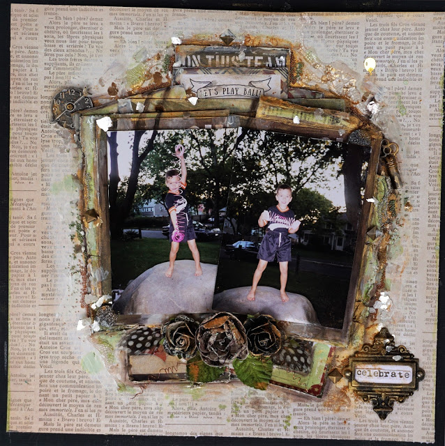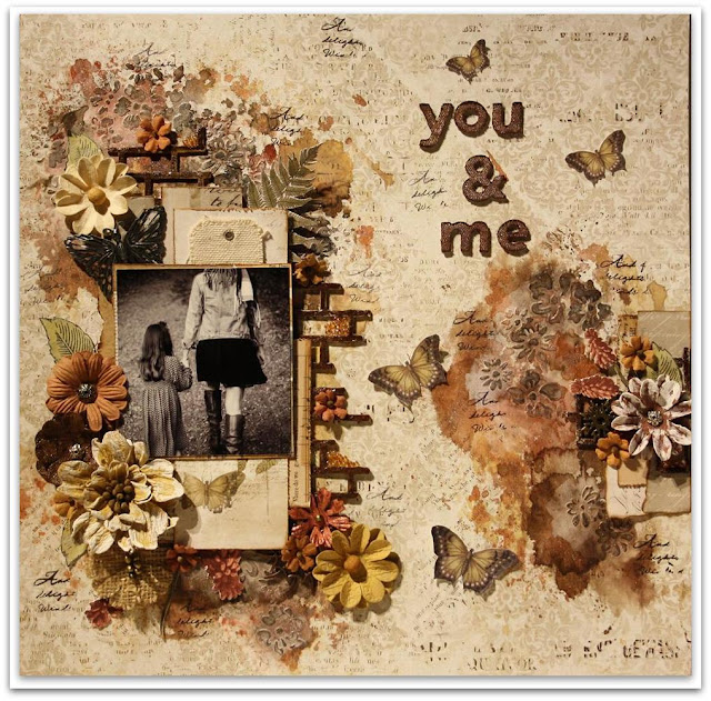 Lilibleu: "TOGETHER... this word immediately made me think about this photo of me and my two boys when they were very young. This is a photo that I like a lot because it reminds me of a beautiful moment full of sweetness! I used an AMPERSAND chipboard to complete the 'You & ME' title sentence."