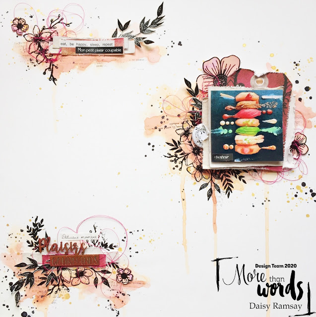 Katrin: I love desserts, cakes, biscuits, ice cream... I love good FOOD! In order to create this layout a little differently than I usually do, I made everything with my cricut maker.  For a final touch, I used some metallic brush strokes and finished by adding a SQUARE PHOTO of a delicious tart.